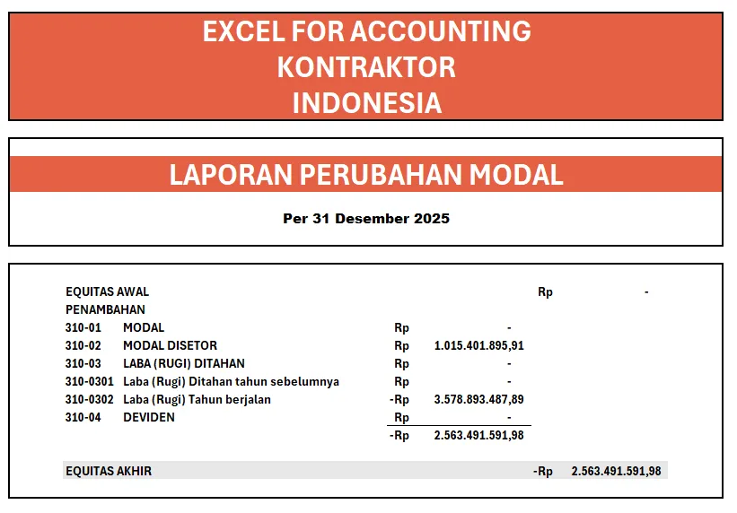 - Laporan Perubahan Ekuitas โ menunjukkan pergerakan modal.